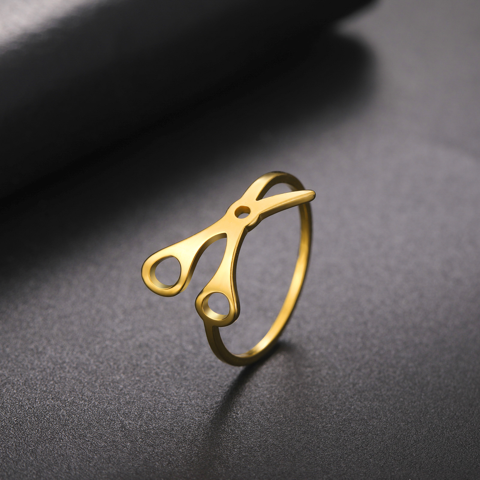 Stainless Steel Scissors Ring Hollow-out Personality Niche Ins Style Ring Simple Fashion High-grade Light Luxury European and American Ring