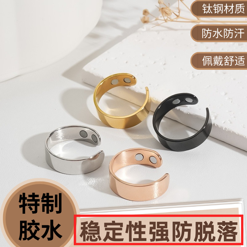 Cross-Border Popular Jewelry Stainless Steel Magnet Ring Magnetic Therapy Opening Anti-Snoring Ring Double Magnetic Health Fat Control Accessories