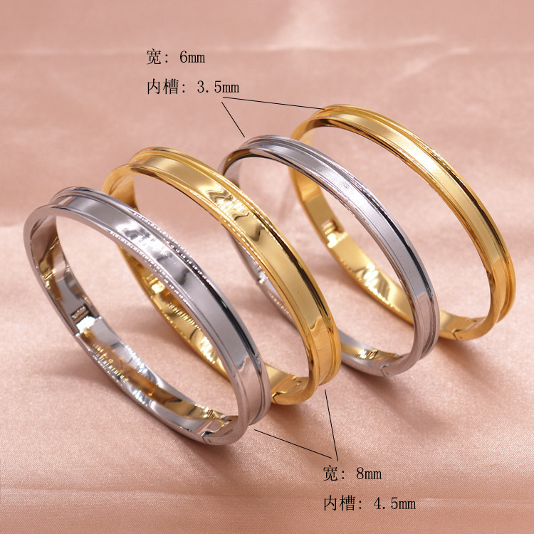 Titanium Steel Grooved Plain Ring Bracelet DIY Leather Ethnic Style Jewelry Song Brocade Cloth Jewelry Hardware Non-Fading Bracelet