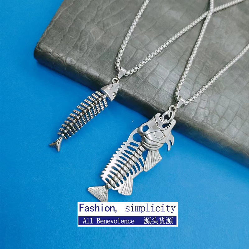Cross-border new fishbone necklace men's and women's street hip-hop necklace autumn and winter sweater chain long Joker necklace wholesale