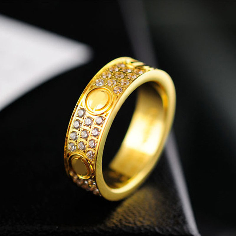Foreign trade fashion titanium steel jewelry narrow version of the three rows of diamonds and six nails ring stars full of diamonds lovers ring Europe and the United States food finger ring
