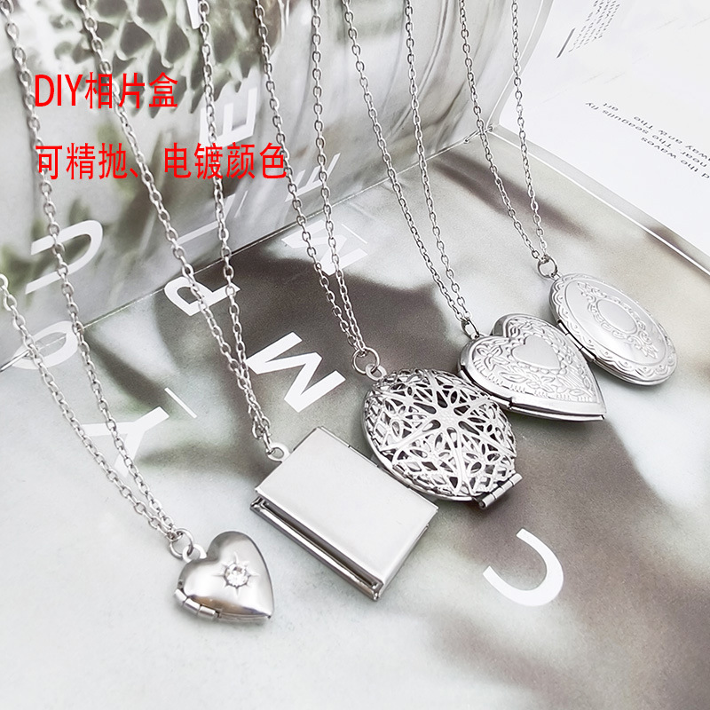 New Retro Stainless Steel Photo Box Pendant Necklace That Can Be Opened to Hold Photos Round Hollow Photo Frame Necklace Wholesale