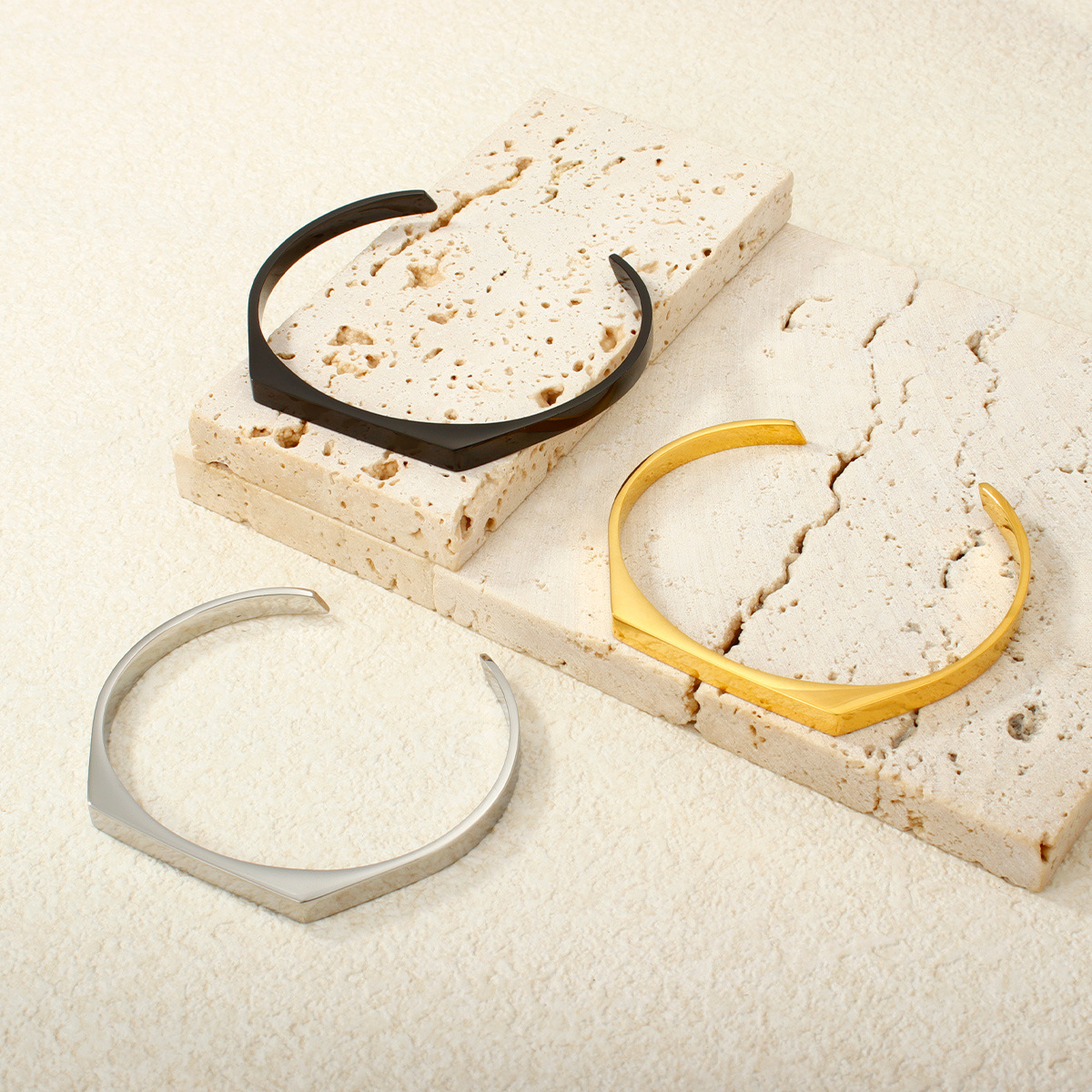 High-End Personalized C-Shaped Open Bracelet, Adjustable Trendy Brand Personality Unisex Smooth Titanium Steel Bracelet, Supplied by Manufacturer