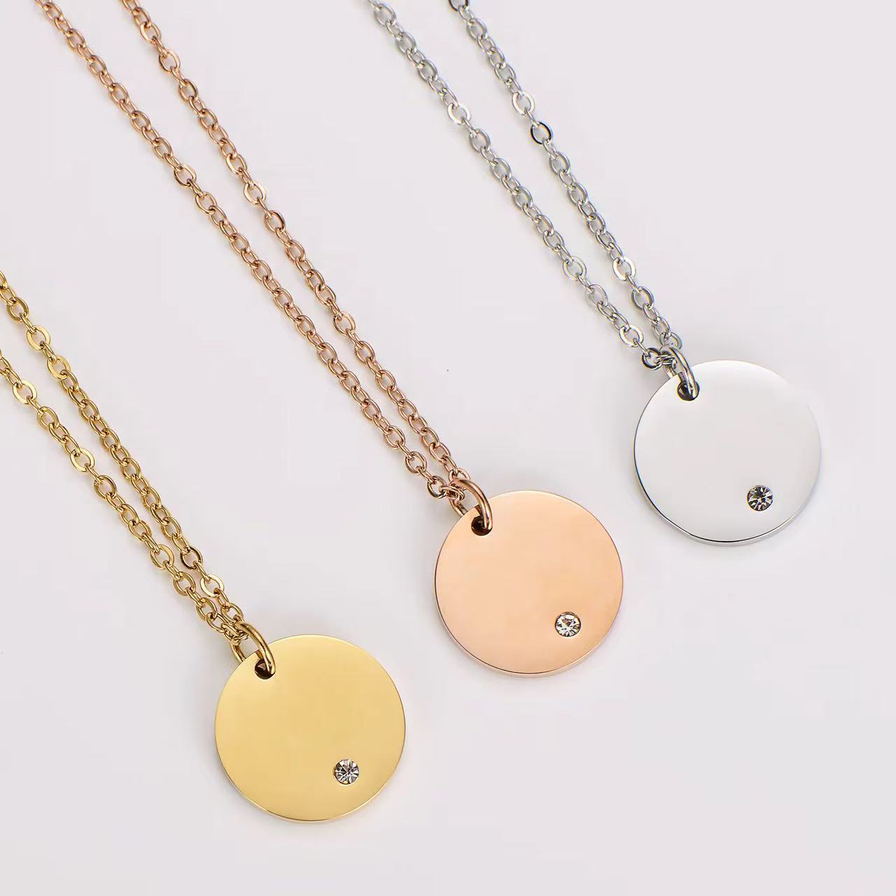 New Simple and Stylish Stainless Steel Round Pendant Necklace with Laser Engraving, Corrosion-Resistant Travel Souvenir Jewelry, Versatile Pendant