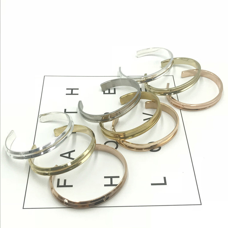 Cross-border European and American Metal Stainless Steel Bracelet Three C- shaped V-shaped Arc-shaped Open Bracelet All-match Bracelet for Men and Women