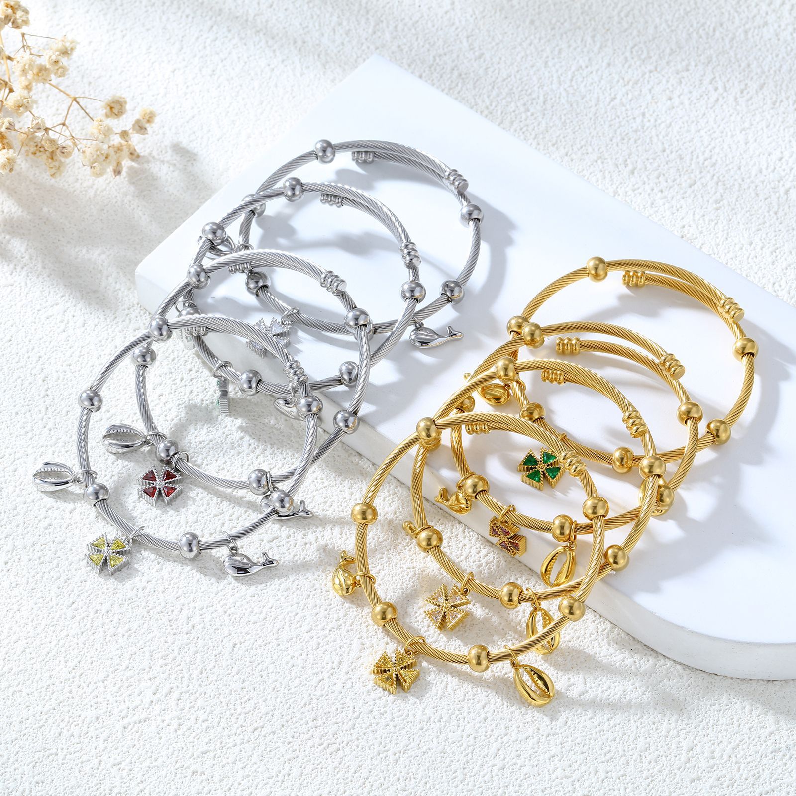 Cross-Border Wholesale Diamond-Encrusted Stainless Steel Bracelet, Fashionable Mud Ball with Steel Beads, European and American Titanium Steel Women's Versatile Bracelet
