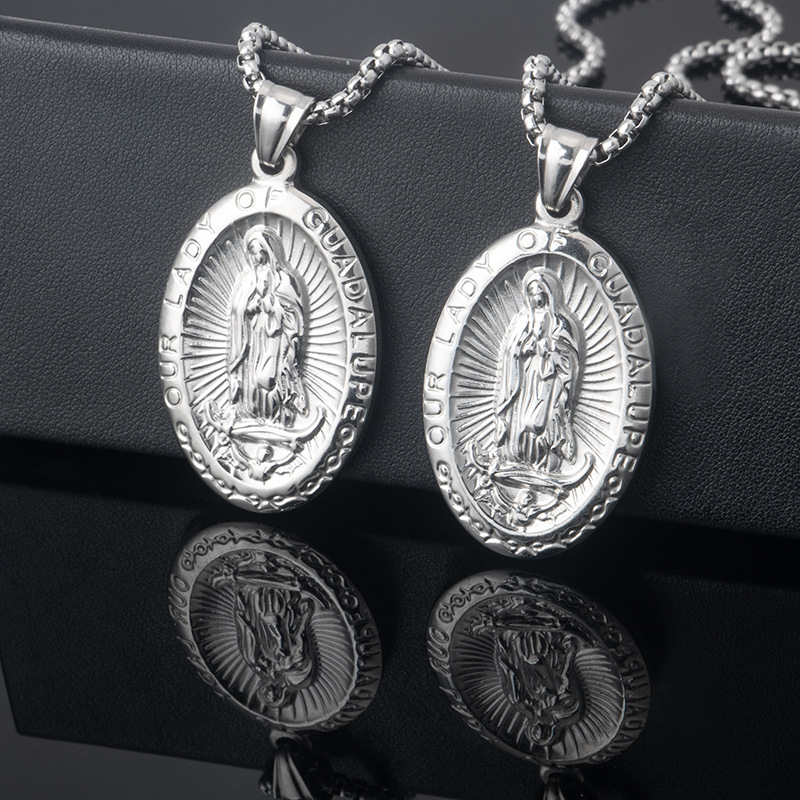 Stainless Steel Classic Simple Retro Oval Maria Pendant Titanium Steel Men and Women Sweater Long Necklace Wholesale