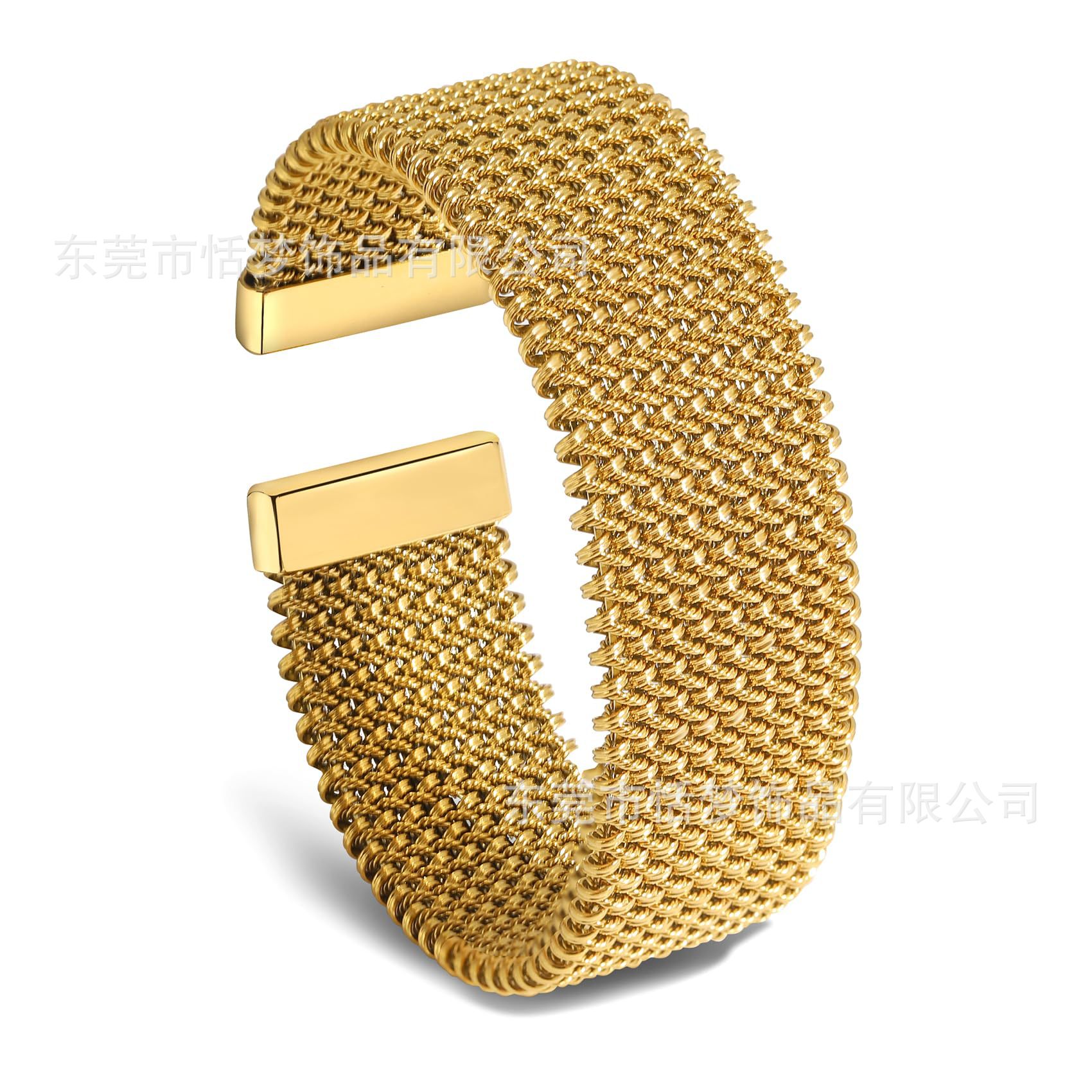 European and American Ins Fashion Simple Titanium Steel Niche Wide Opening Braided Bracelet Plated with 18K Real Gold Non-Fading Bracelet Jewelry