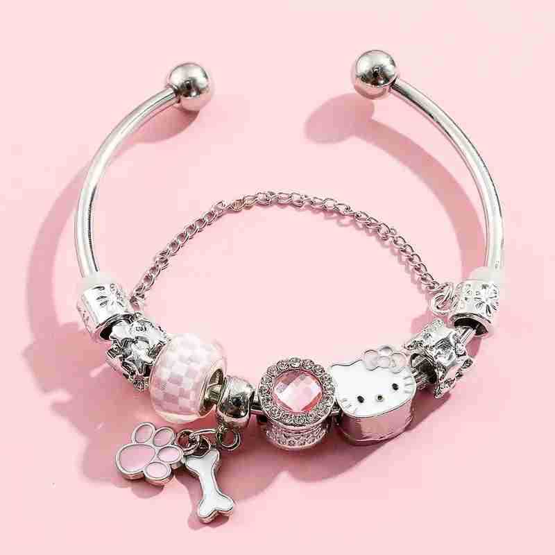 Cross-border Panjia Stainless Steel Bracelet Bracelet Cute KT Cat Big Hole Beads DIY Cartoon Hello Kitty Open Hand Ring