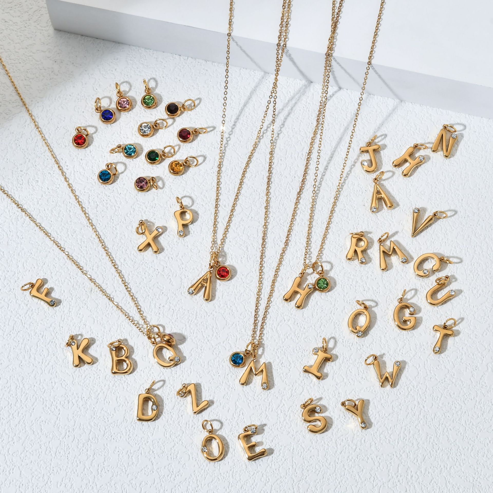 European and American Cross-Border Niche 26 English Small Letters DIY Pendant Necklace Stainless Steel Twelve Birthstone Clavicle Chain