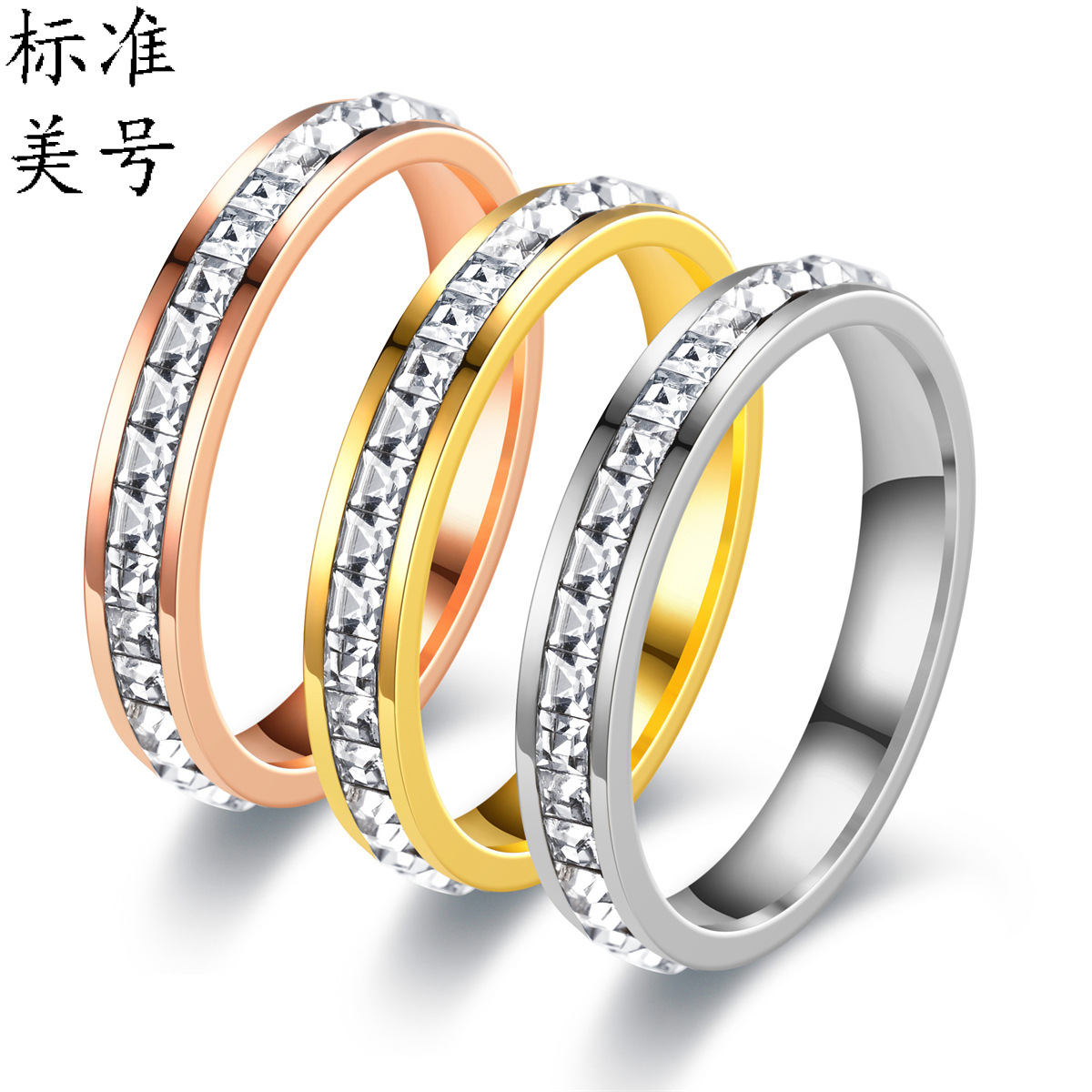 Cross-border three-circle diamond ring card plus titanium steel nail ring simple non-diamond gold ring fashion stainless steel jewelry