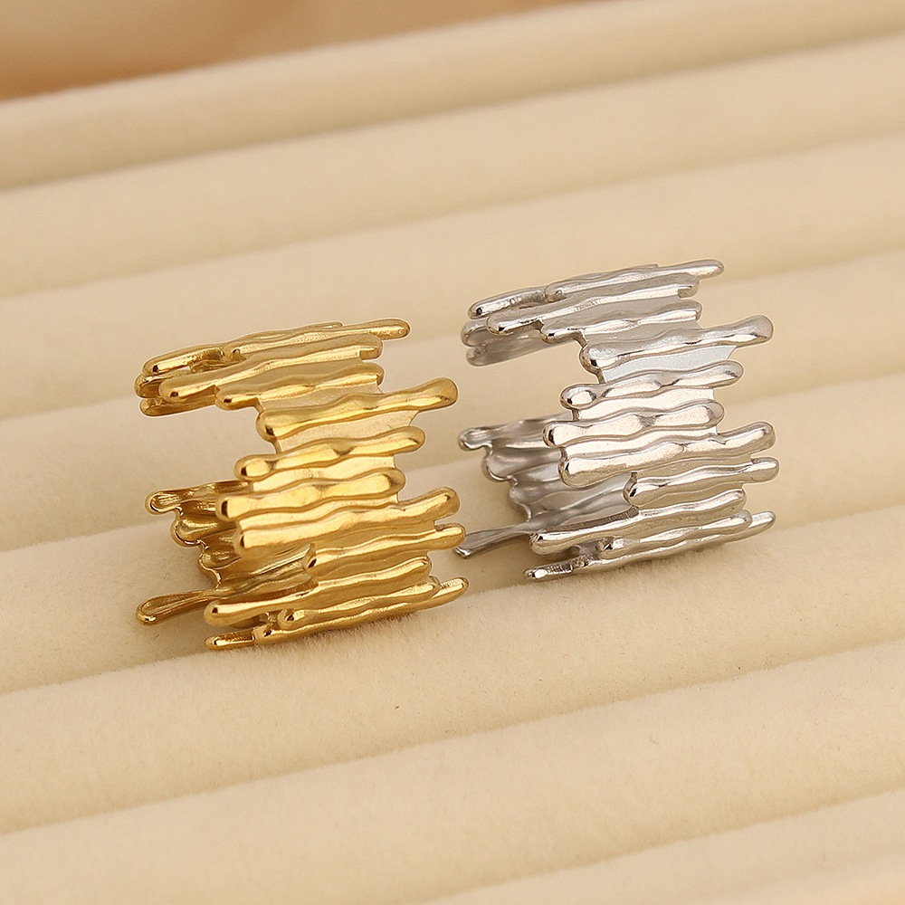 European and American New Style Stainless Steel Hydraulic Women's Ring Simple Irregular Lava Texture Branch Open Ring Tail Ring