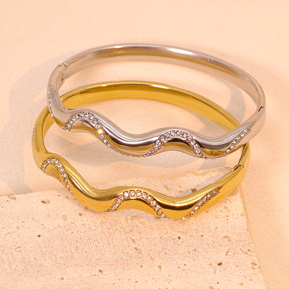 Ins Cool Style Bracelet Women's Niche Design Wavy Lines Diamond Sweet Cool Simple Fashion Stainless Steel Bracelet