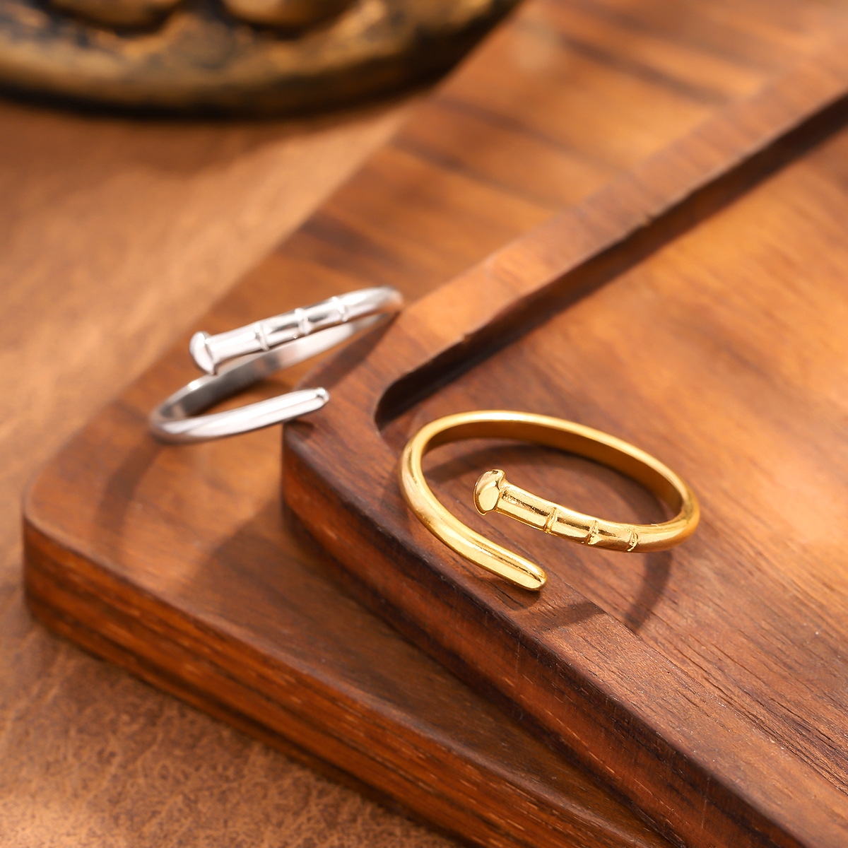 Amazon's Best-Selling Stainless Steel Nail Ring for Women Ins Simple and Fashionable 18K Gold-Plated Open Adjustment Ring