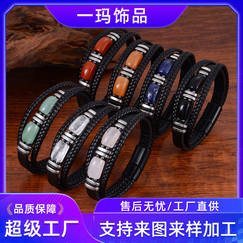 European and American Cross-border Hot Sale Tiger Eye Bracelet Men's Multi-layer Rope Natural Stone Bracelet Magnetic Buckle Obsidian Bracelet Jewelry