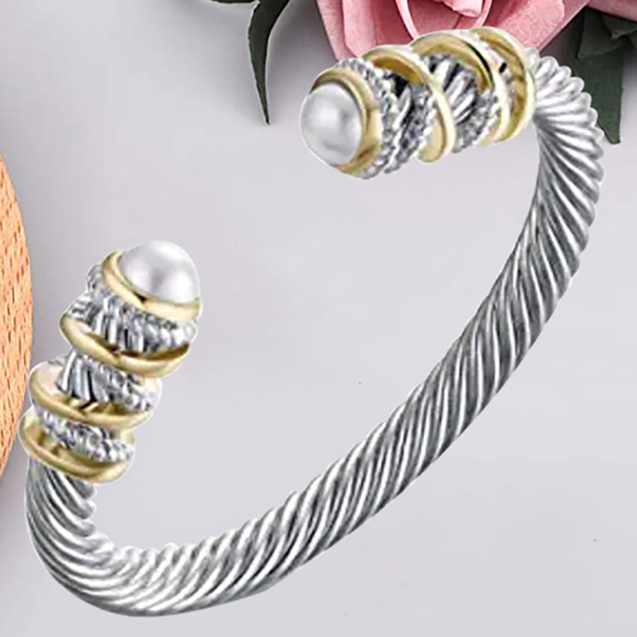 Foreign trade jewelry women's wholesale metal thread ring jewelry waterproof electroplated rose gold stainless steel open bracelet