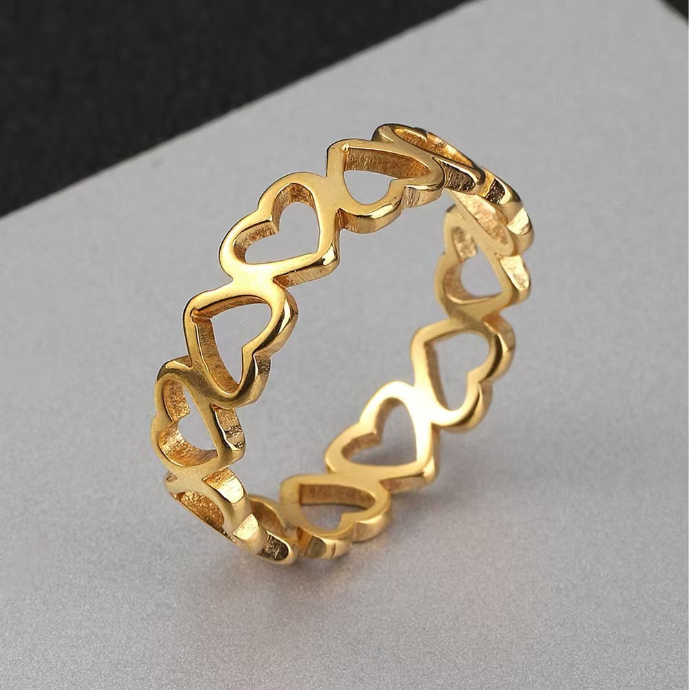 Cold Style Fashionable Small Fresh Heart-Shaped Titanium Steel Ring 18K Gold Ring Jewelry Female Stylish Ins Does Not Fade