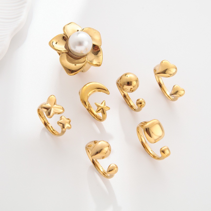 European and American Simple Gold Stainless Steel Open Ring Women's Light Luxury High-End Geometric Love Ring Hand Jewelry Wholesale