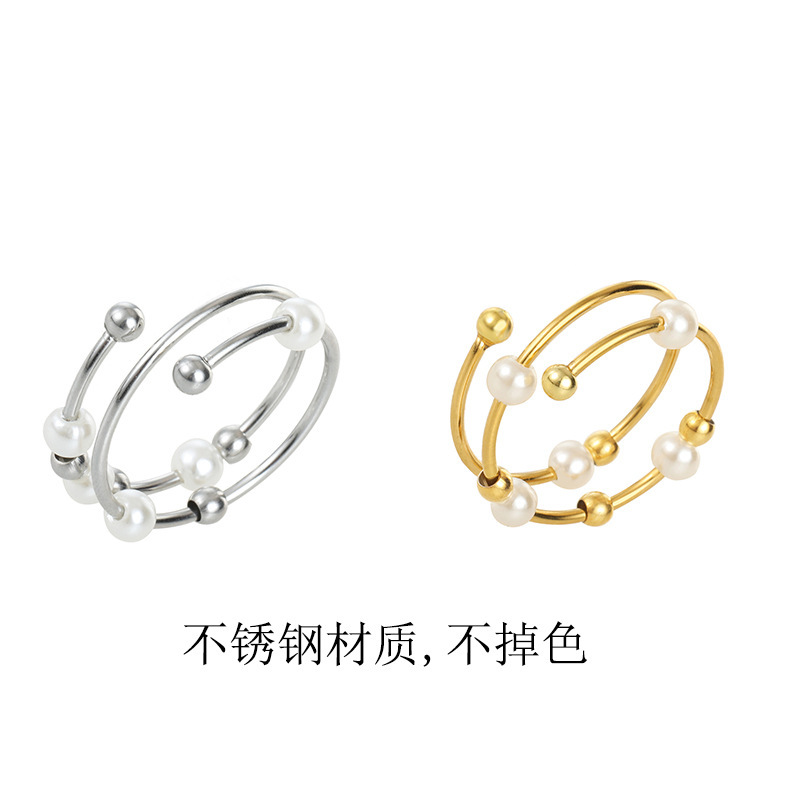 2023 new Amazon anti-anxiety ring opening Pearl decompression creative rotation beads stainless steel beads ring