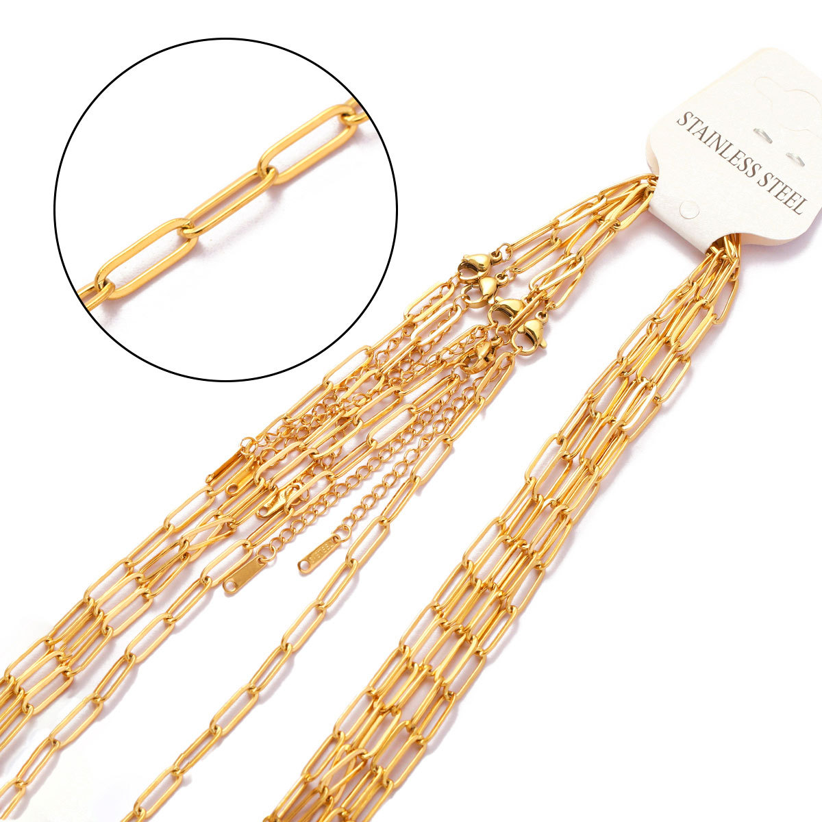 18K color retention real gold long flat cross chain diy titanium steel necklace women's side box chain stainless steel cladosin chain