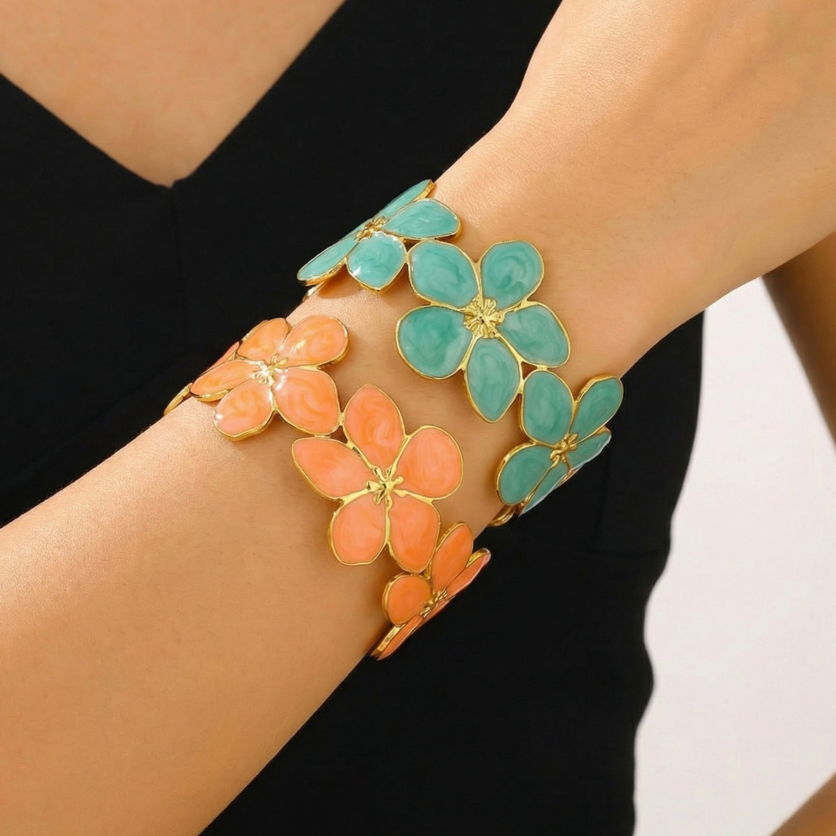New Hot-Selling Flower Stainless Steel Oil Drop Bracelet, Non-Fading, Fashionable and Versatile C-Shaped Open Bracelet Bracelet Wholesale