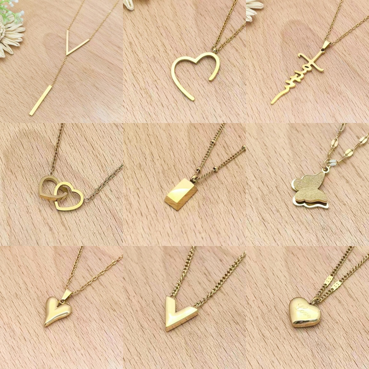 Fashionable and High-End Stainless Steel Pendant Clavicle Chain Accessories for Women Geometric Rectangular Small Gold Brick Heart Light Luxury Necklace