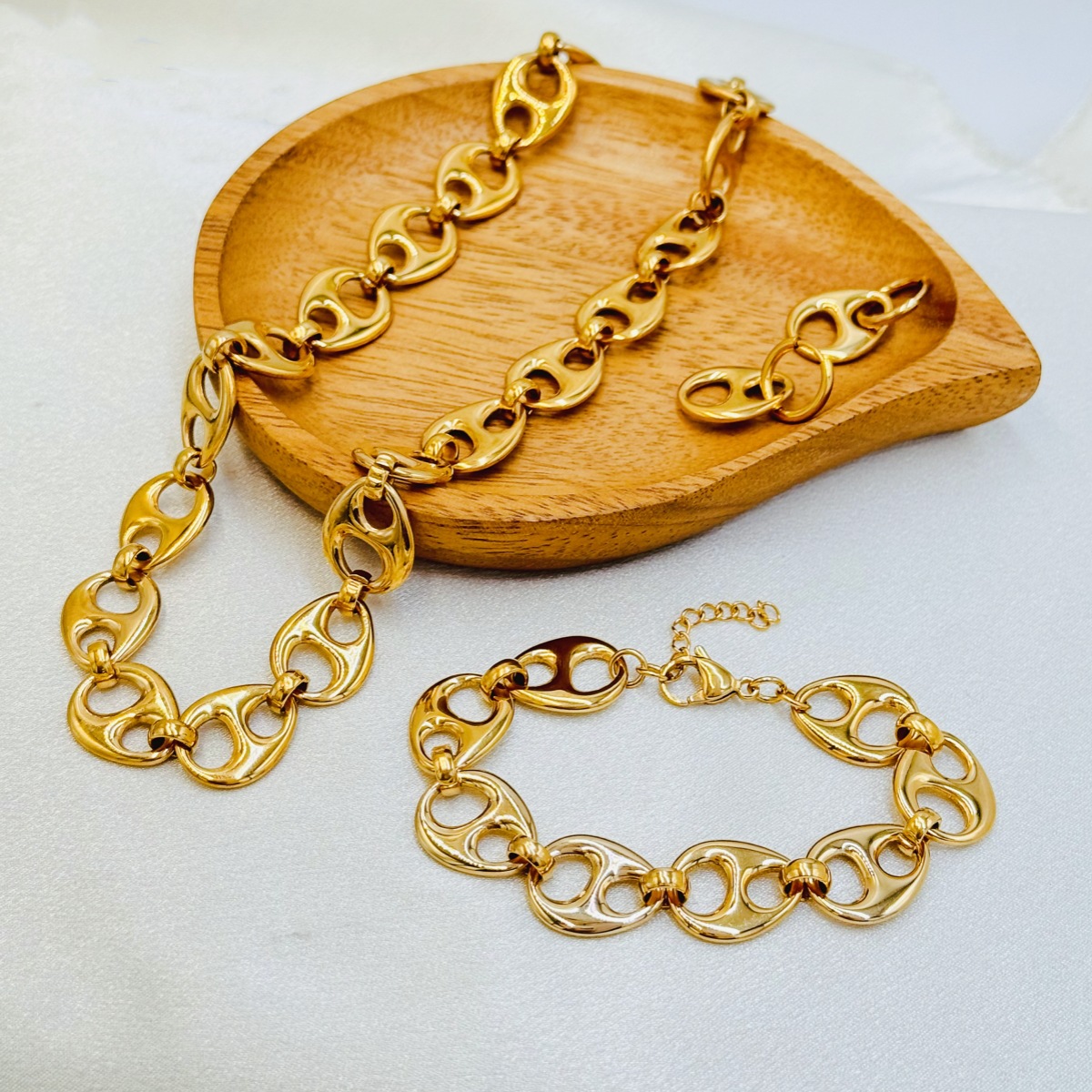 Cross-border jewelry wholesale stainless steel oval handmade chain necklace bracelet plated 18K gold Hua Lanxin NC-2100