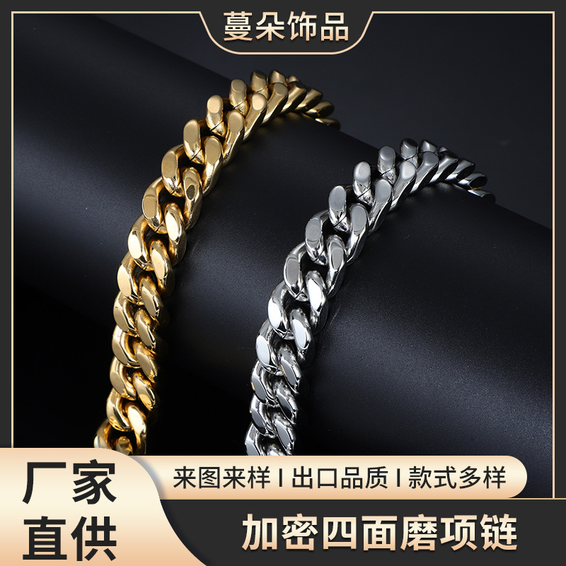 Cross-Border Stainless Steel Necklace Hand-Woven Interlocking Keel Chain European and American Men's Cuban Chain Titanium Steel Bracelet