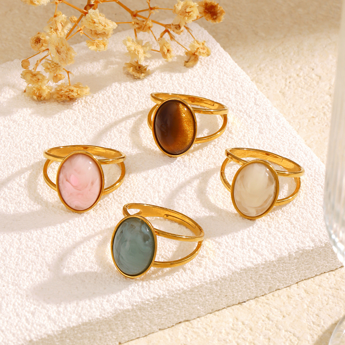 European and American Fashion Retro Inlaid Colorful Trendy Stainless Steel Simple Geometric Oval Ring Personalized Titanium Steel Ring