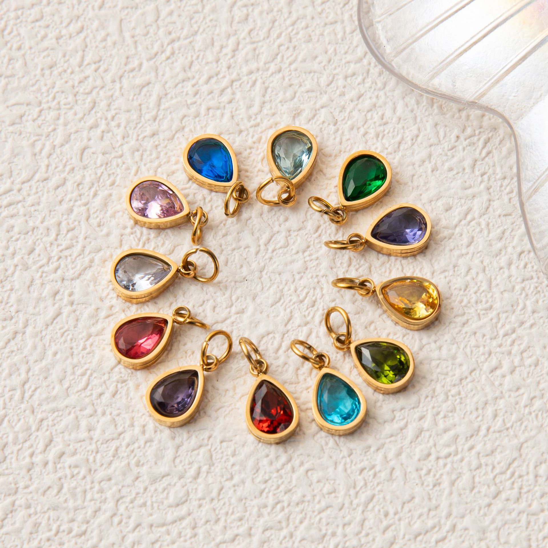 Necklace Stone DIY Birthday Europe and America 18K Gold Valentine's Day December Empty Electroplating Pendant Stainless Steel Furnace Water Drops