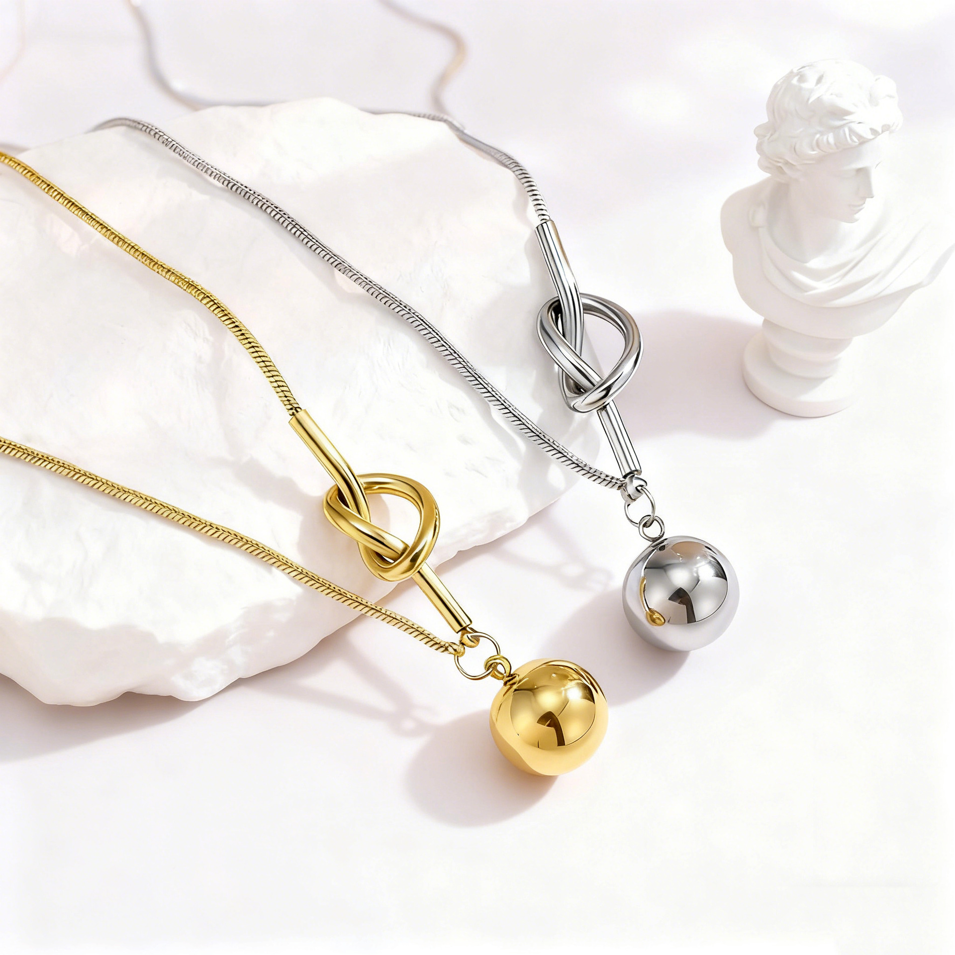 Cross-Border Hot-Selling Rope Knot Ball Stainless Steel Necklace, Fashionable and Versatile, 18K Gold-Plated Geometric Necklace, High-End