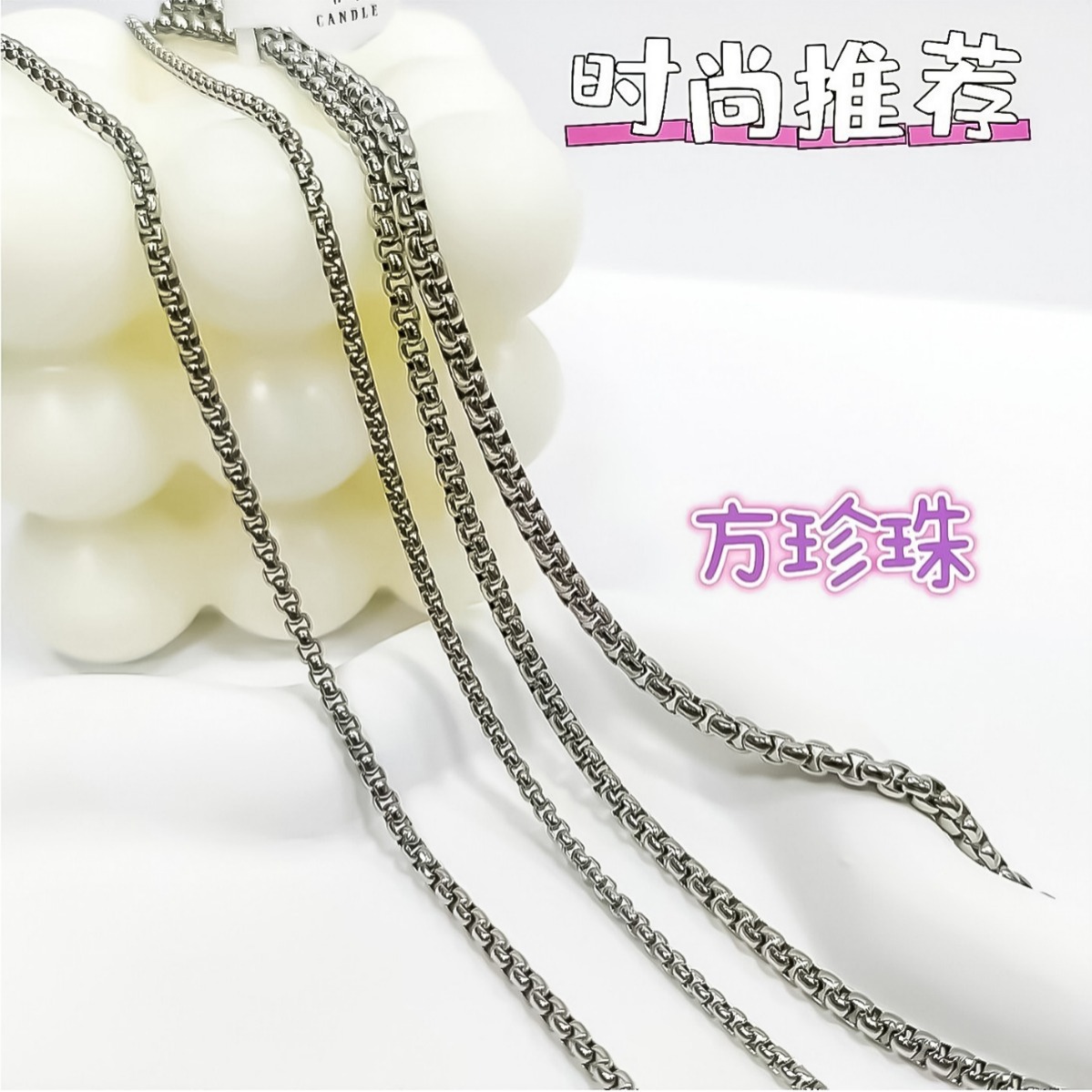 Stainless Steel Square Pearl Necklace Clavicle Chain DIY Sweater Bag Accessory Chain Light Luxury Short Style Star Moon Saturn