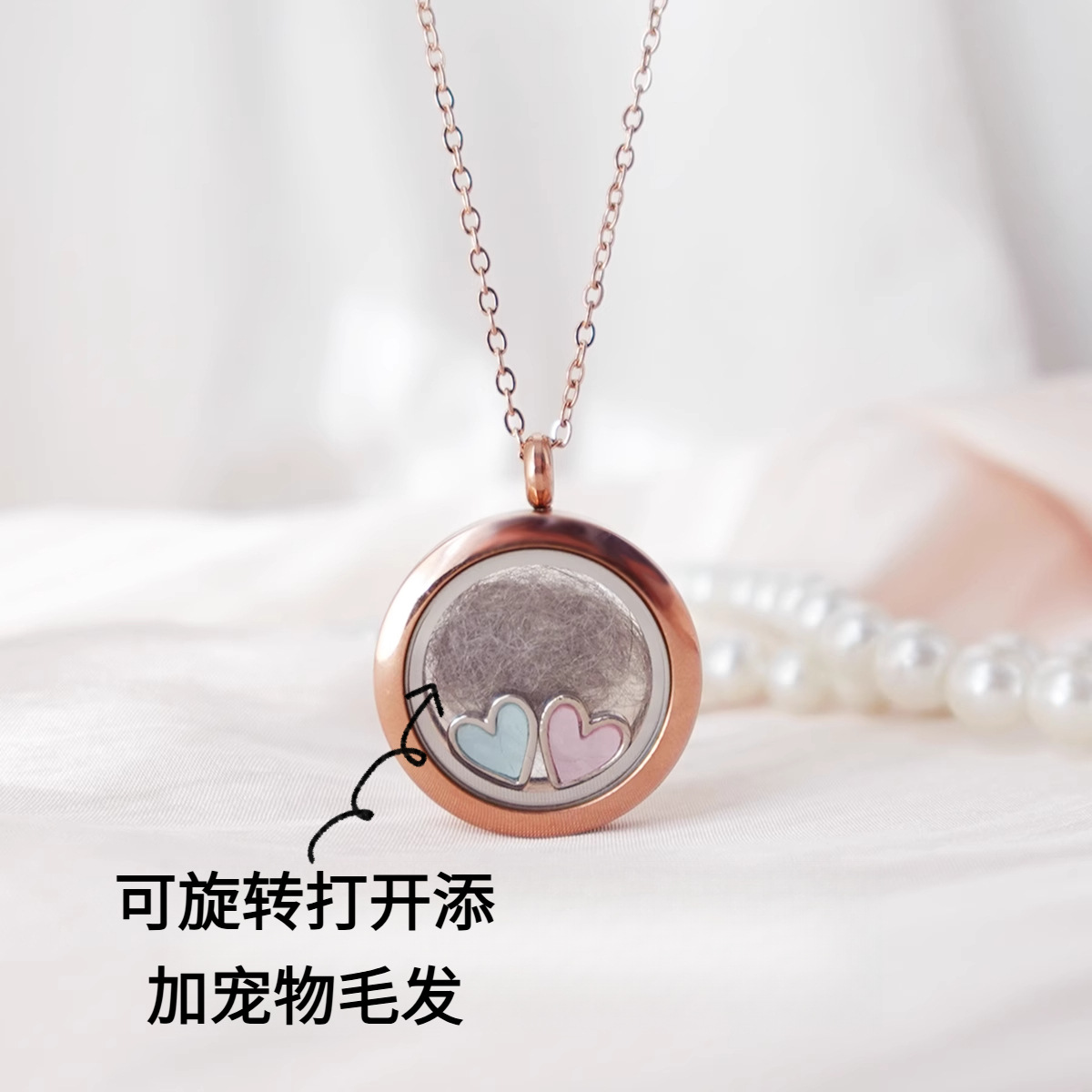 Cross-Border Hot-Selling Pet Hair Commemorative Necklace Heart DIY Pendant Tooth Ashes Souvenir Can Be Opened for Commemoration