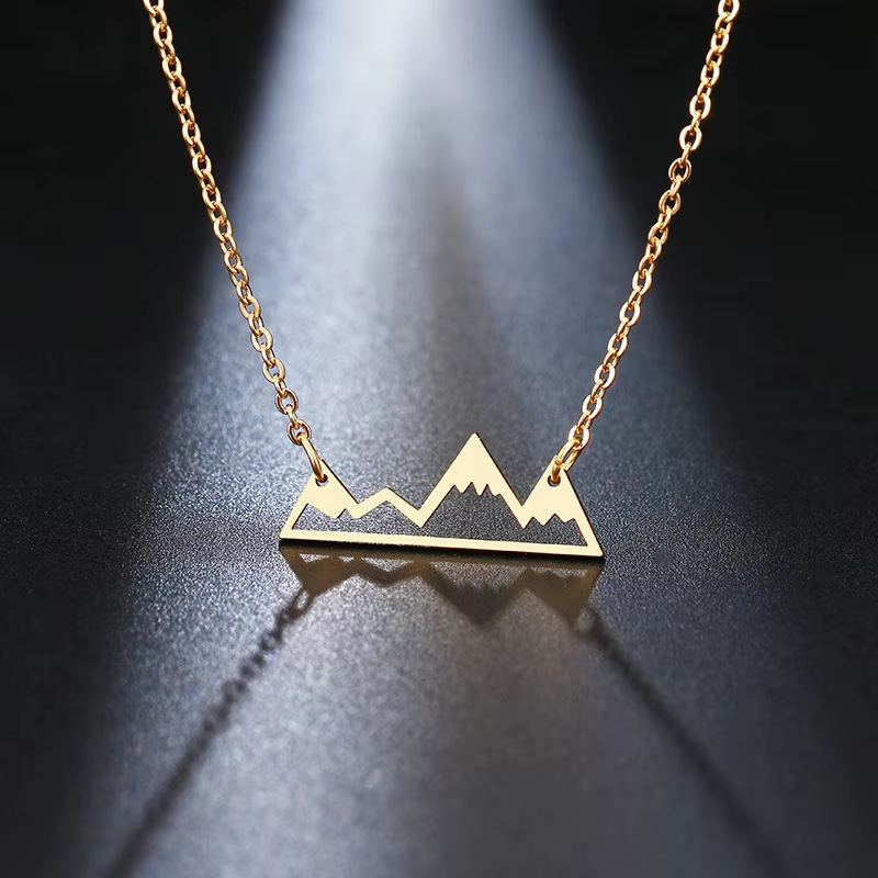 New Fashionable Mountain Pendant Women's Stainless Steel Necklace Snow Mountain Range Hollow High-End Creative Jewelry Accessories