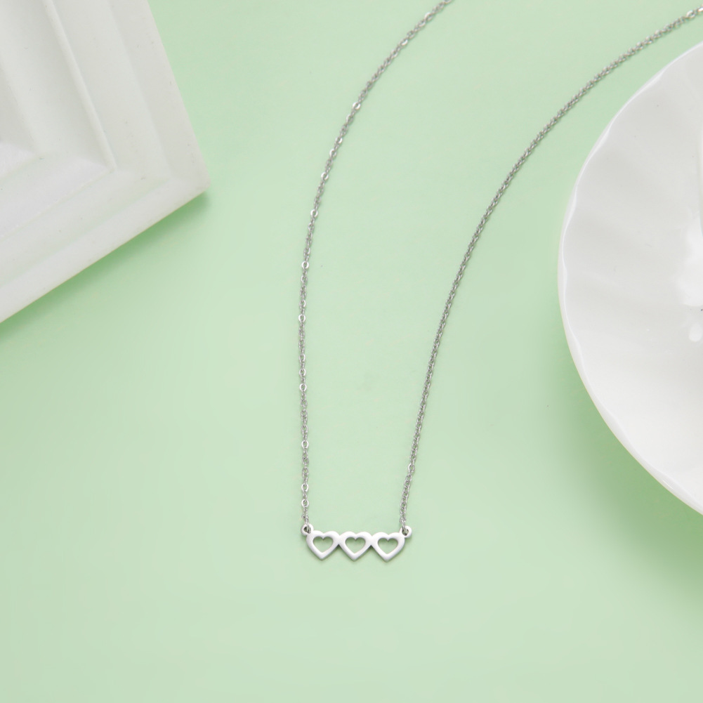Manufacturer Wholesale Girls Titanium Steel Clavicle Chain Simple Hollow Three-Heart Pendant Cut Stainless Steel Steel Necklace