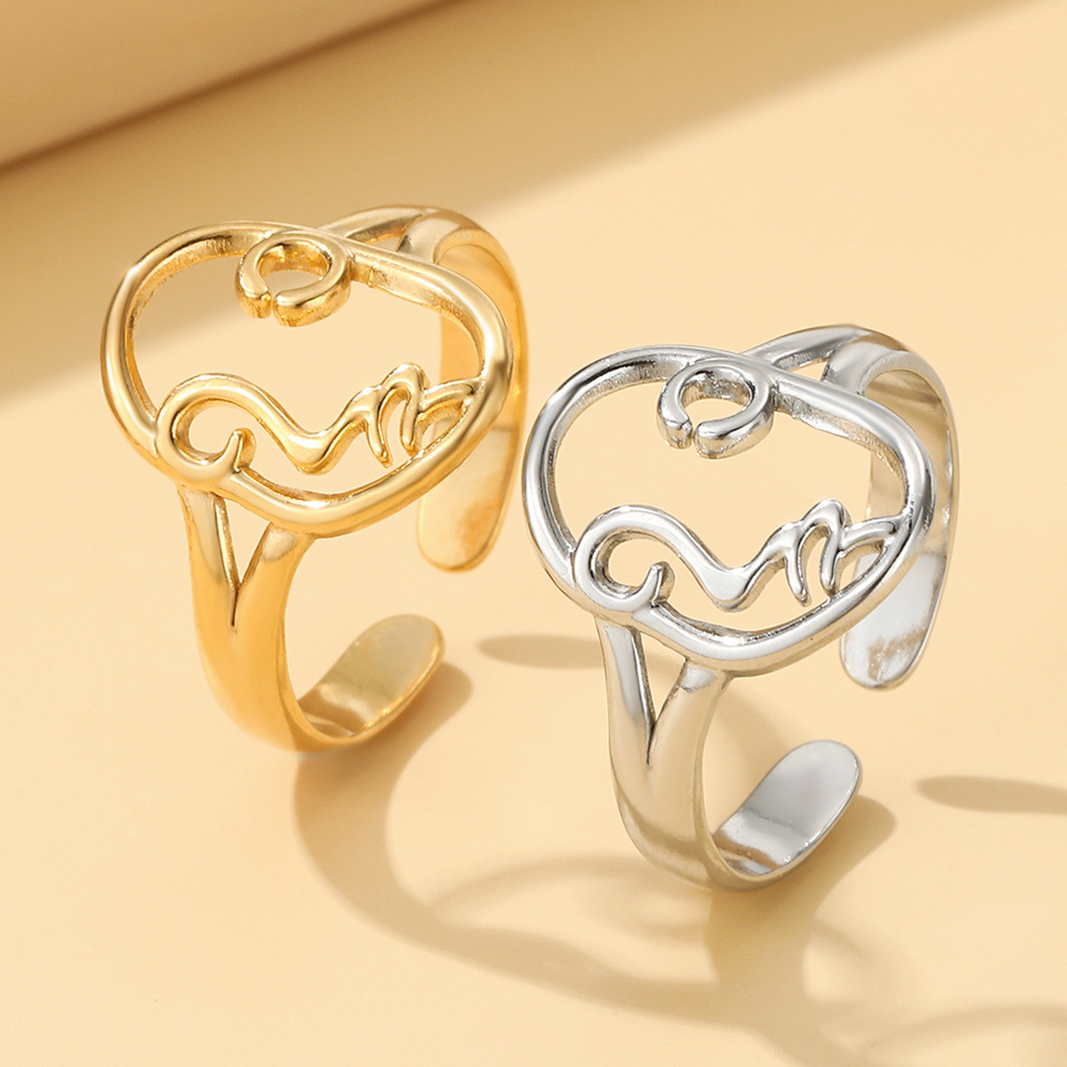 Cross-border vacuum gold-plated stainless steel hydraulic jewelry cold style geometric abstract face open ring female ring
