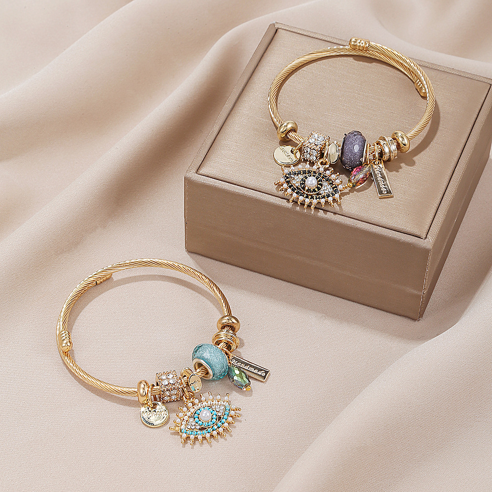 European and American cross-border bracelet fashion DIY Devil's Eye pendant stainless steel bracelet female temperament lipstick beaded bracelet
