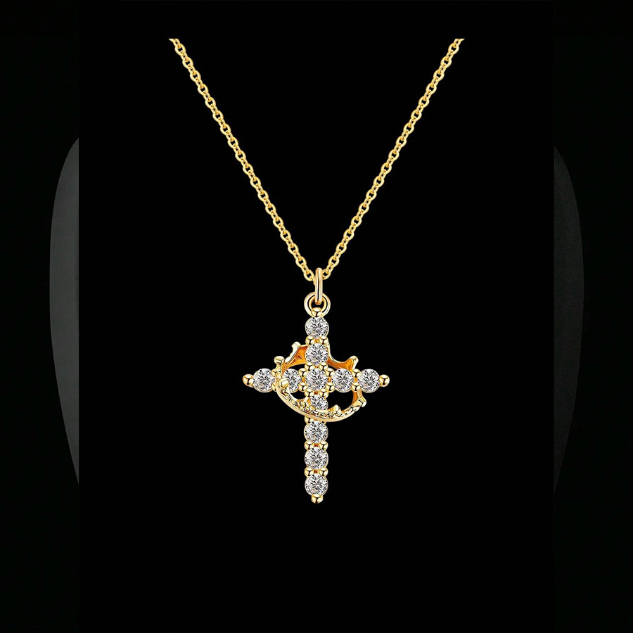 Cross-border Explosions Personalized Copper Cross Emperor Stainless Steel Crown Necklace Rotatable Circle Cross Pendant Necklace