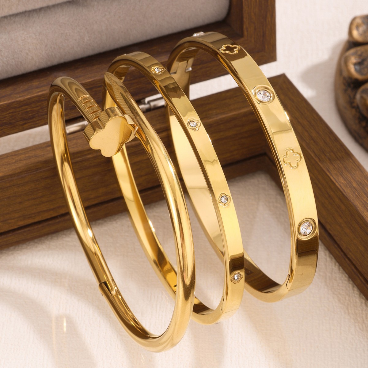 Cross-Border Shein Popular Four-Leaf Flower Stainless Steel Bracelet Combination Fashion Diamond Inlaid Ready Stock 18K Vacuum Gold Plating