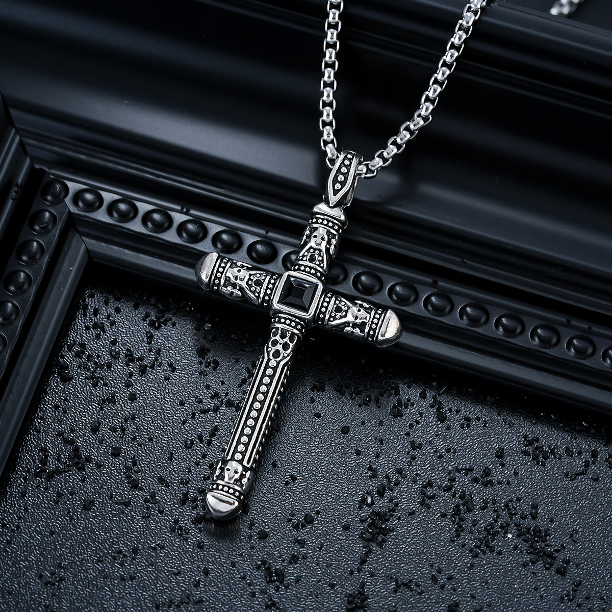 Cross-Border Retro Personalized Stainless Steel Chain Cross Necklace Men's Niche Retro Pendant Sweater Chain Jewelry Trend