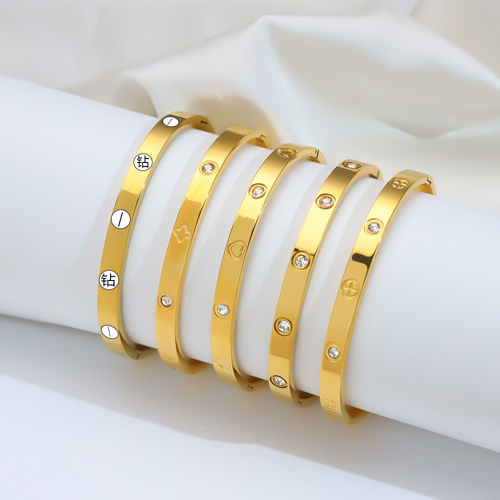 Hot sale titanium steel bracelet simple peach heart diamond stainless steel bracelet furnace vacuum plating 18k gold manufacturers wholesale