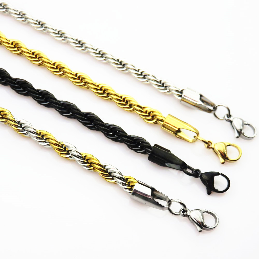 Spot Gold Black Two-Color Stainless Steel Twist Chain Necklace Titanium Steel Men's Chain Export Jewelry Supply