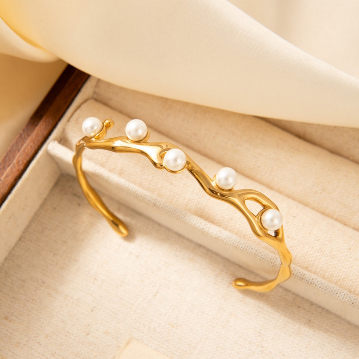 European and American stainless steel bracelet new pearl bracelet high sense gold-plated opening bracelet titanium steel hand jewelry cross-border explosions