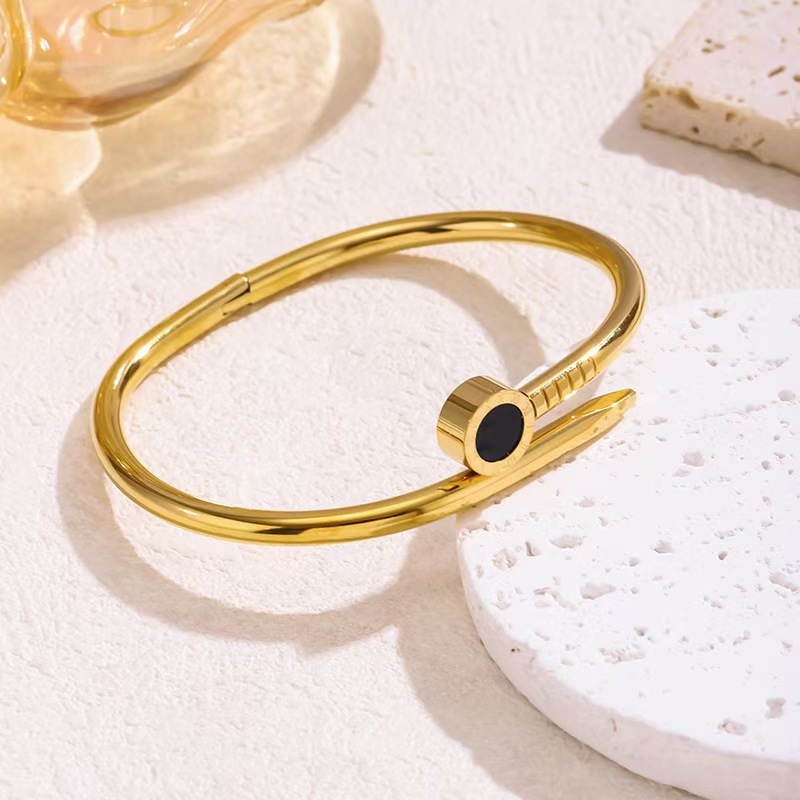 New Cross-border 18K Electroplated Stainless Steel Nail Bracelet Fashion European and American Light Luxury Women's High-end Color-resistant Bracelet
