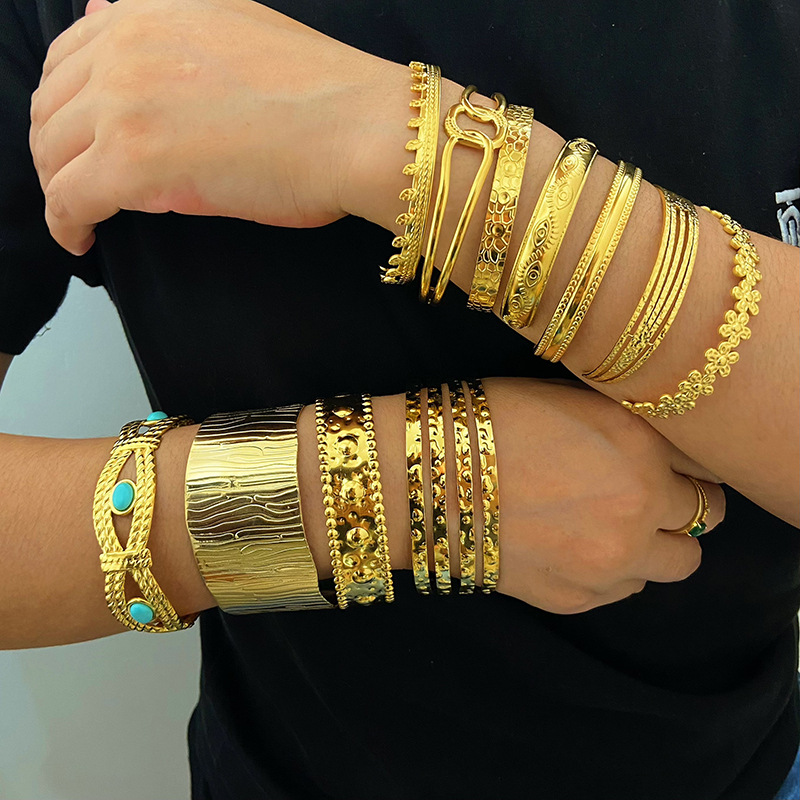 Europe and the United States cross-border fashion retro stainless steel bracelet women's open palace wind titanium steel bracelet gold-plated jewelry wholesale