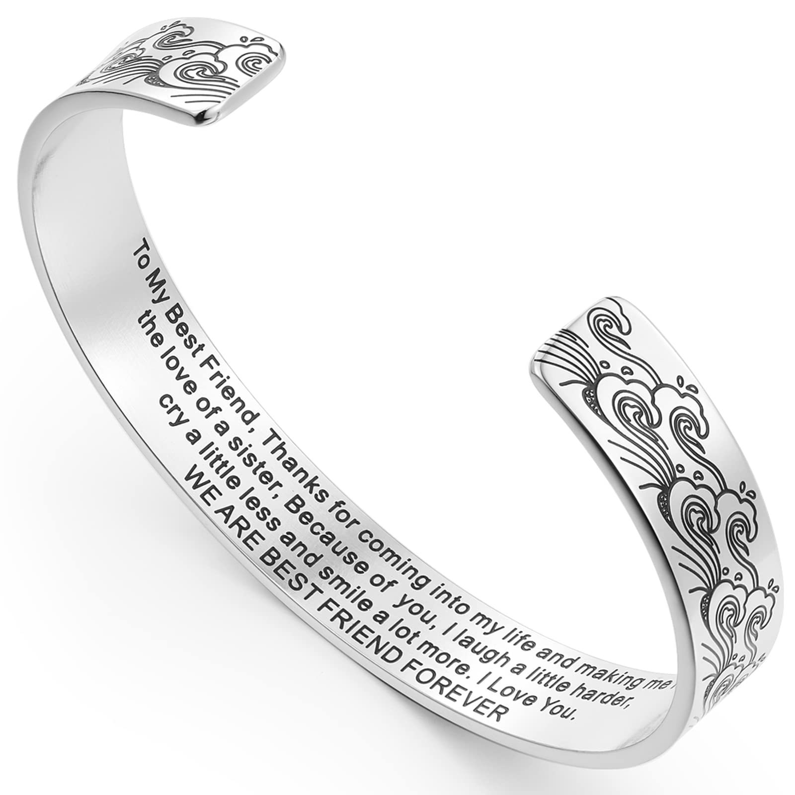 Stainless steel bracelet wave style lettering bracelet to my friend open adjustable flat head stainless steel bracelet