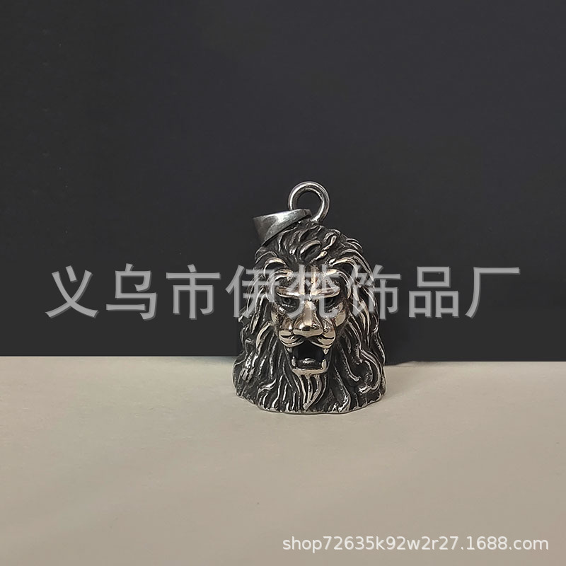 AliExpress foreign trade punk style lion head stainless steel chain necklace vintage Lucky Bell keychain wholesale
