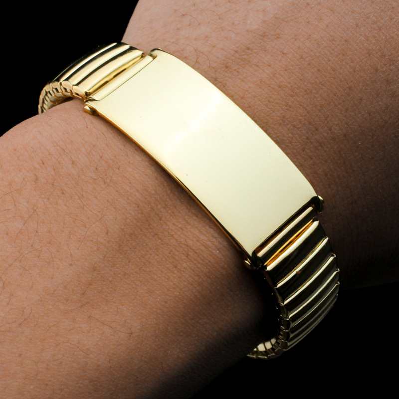Stainless Steel Curved Brand Watch Chain Men's European and American Men's Silver Gold Engraving Bracelet Elastic Strap Wrap Chain