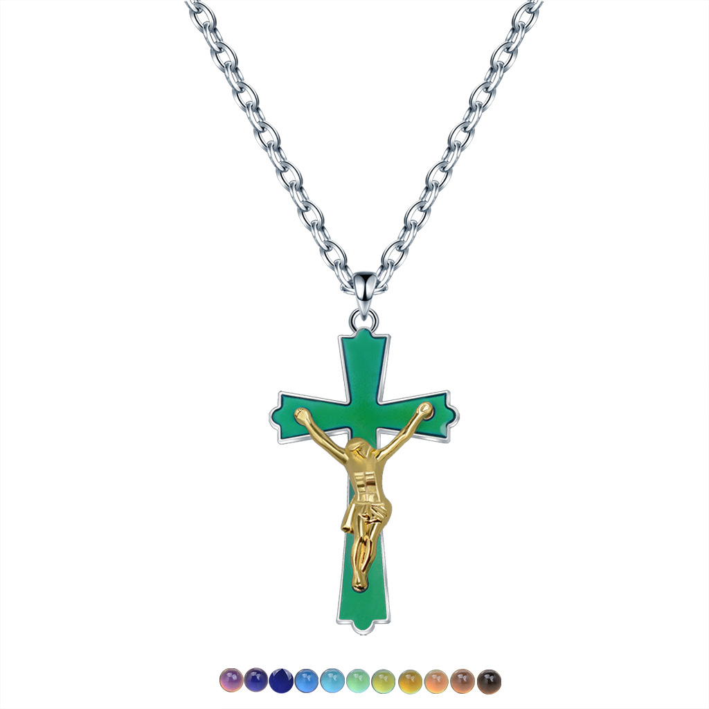 Cross-border European and American Hot-selling Stainless Steel Chain Cross Temperature-sensitive Color-changing Necklace