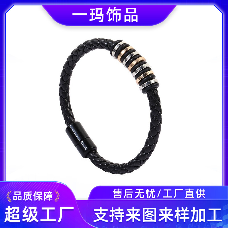 Cross-border leather bracelet colorful stainless steel jewelry leather woven bracelet leather bracelet simple trend leather bracelet wholesale